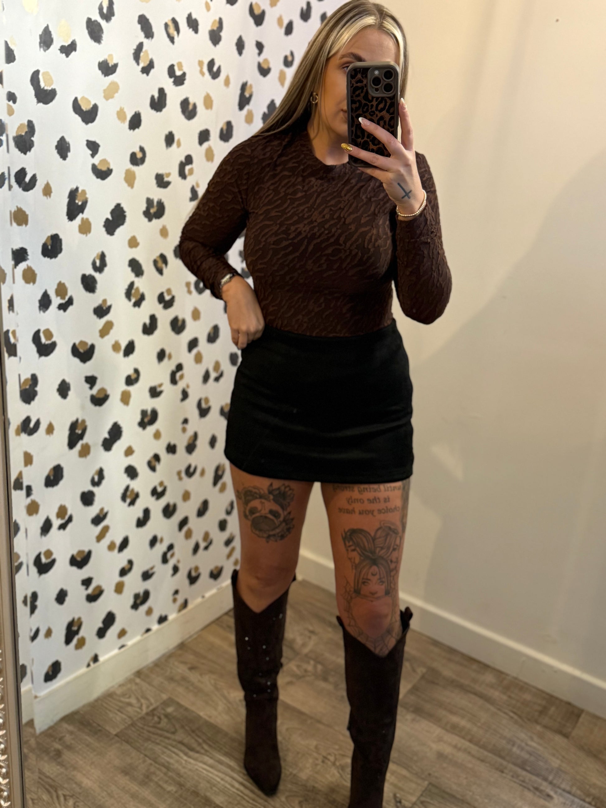 Brown Mesh Printed Top